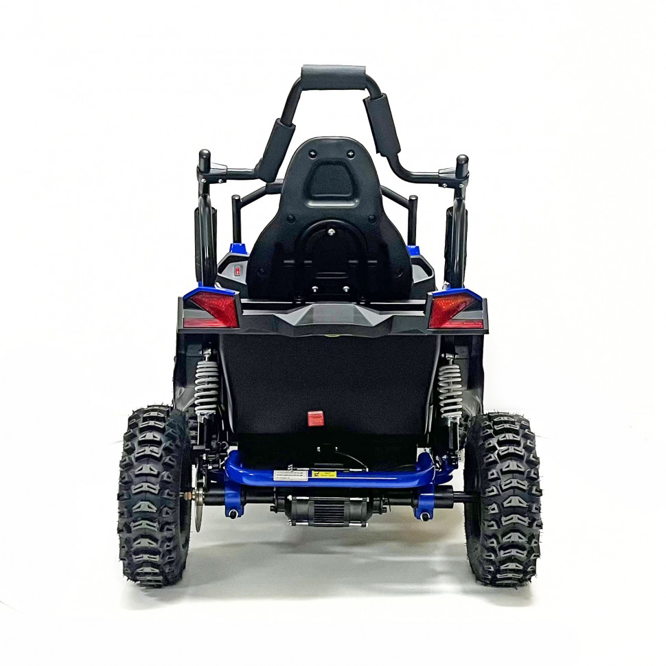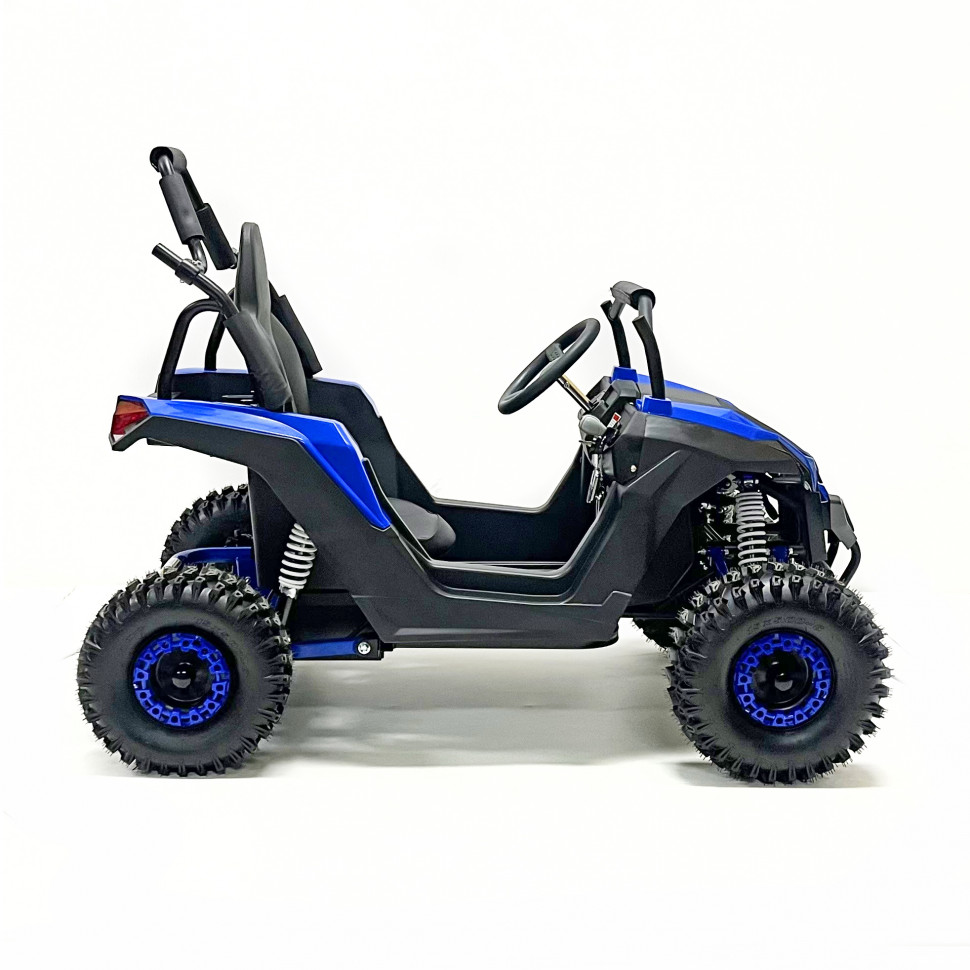 Багги оборудован пружинными амортизаторами, которые обеспечивают плавный ход и комфорт даже на неровной местности. Дисковые тормоза на передней и задней оси гарантируют надежное торможение, что повышает уровень безопасности во время поездок.