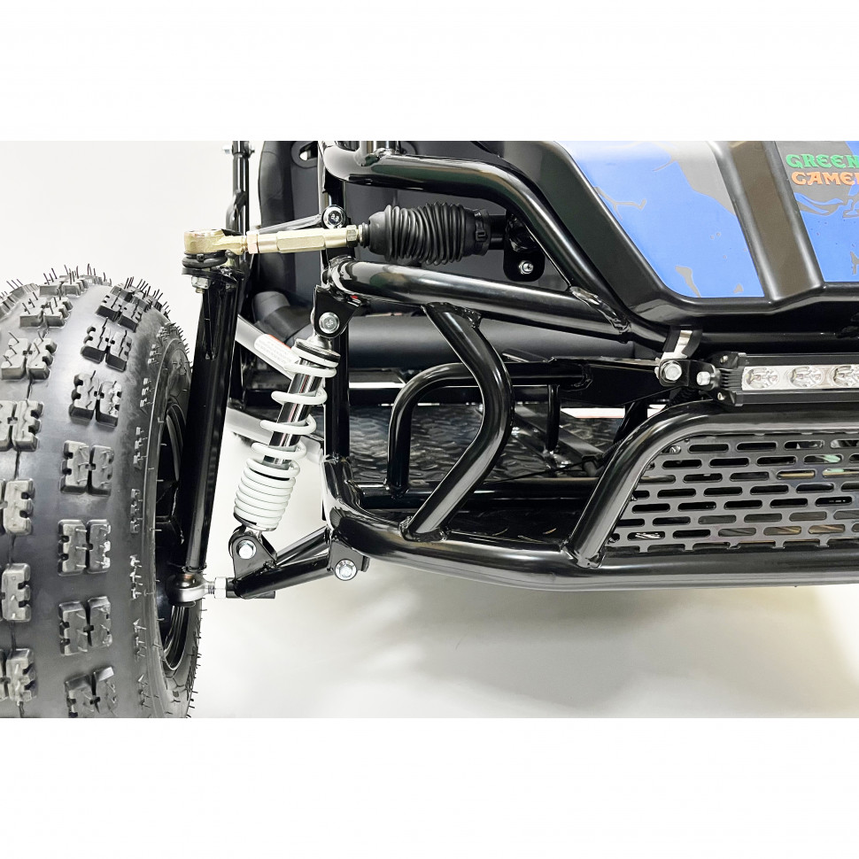 Багги оборудован пружинными амортизаторами, которые обеспечивают плавный и комфортный ход даже на неровных поверхностях. Дисковые тормоза как спереди, так и сзади гарантируют надежное торможение, что значительно повышает уровень безопасности во время движения.