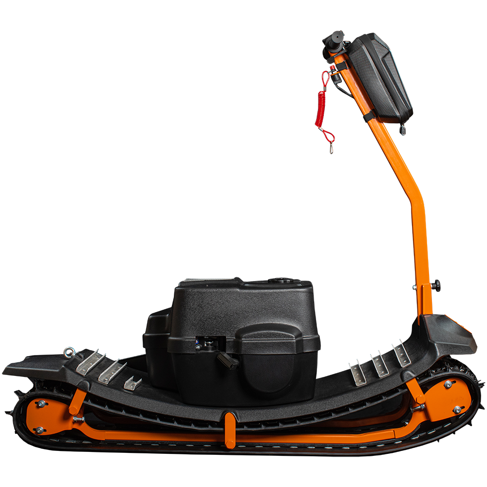 Sibmaster PRO оснащен системой подвески для комфортного и безопасного передвижения, а складная конструкция облегчает хранение и транспортировку мотосноуборда. Уровень подготовки для использования этого устройства может быть любой, от новичка до профессионала.
