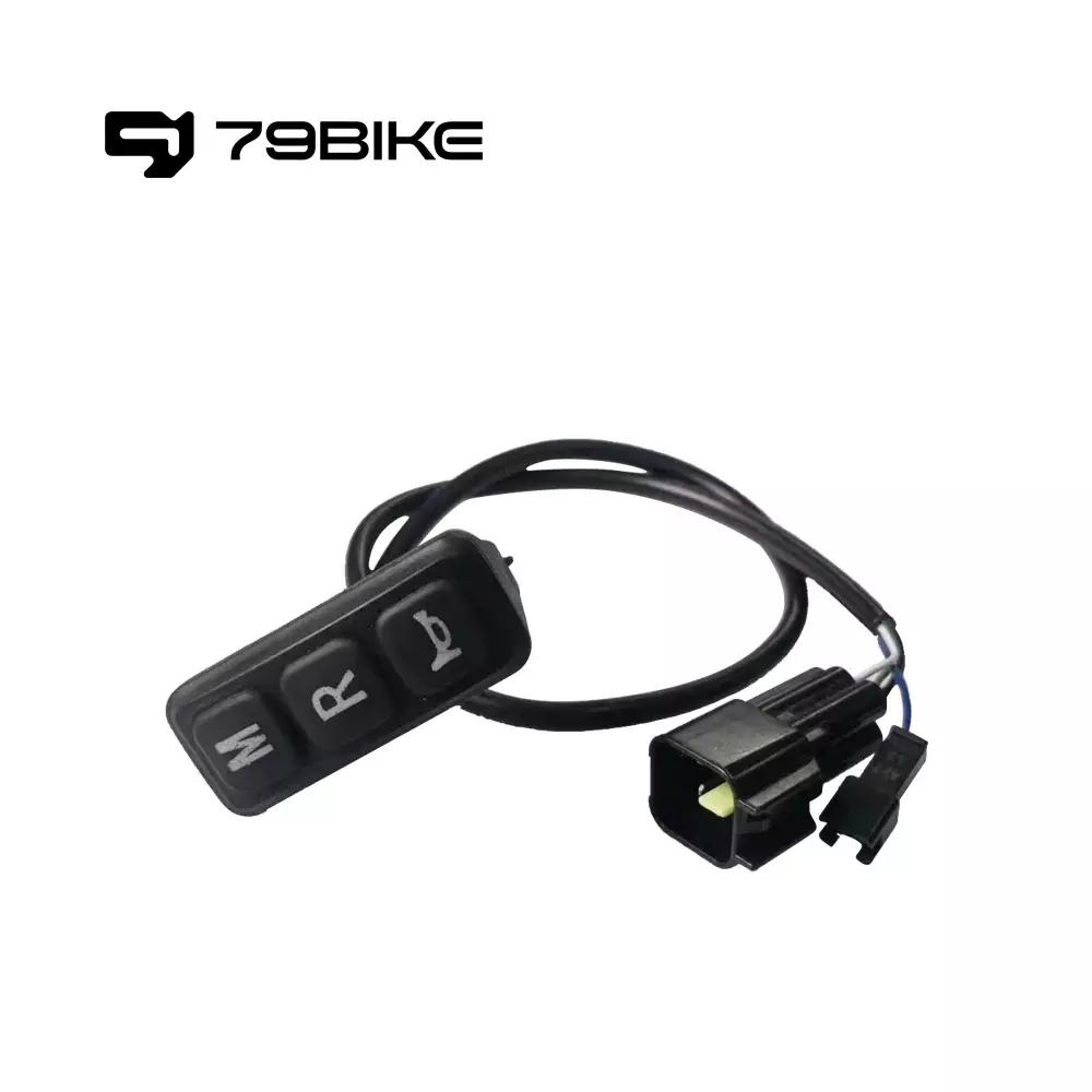 Кнопка выполнена в стильном черном цвете, что позволяет ей гармонично вписаться в общий дизайн вашего электровелосипеда. Она изготовлена из прочных материалов, что обеспечивает долговечность и устойчивость к износу. Это особенно важно для элементов, которые подвергаются частому использованию.