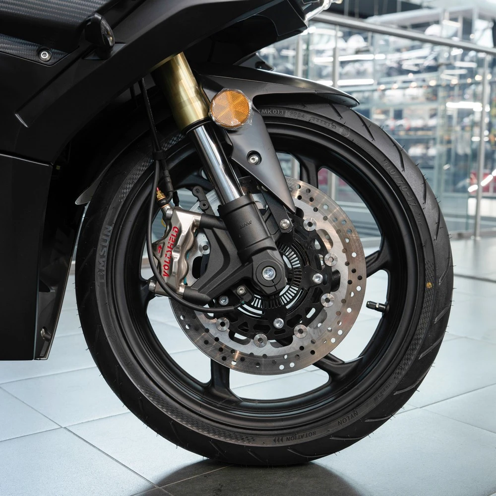 Размеры мотоцикла составляют 2040*710*1120 мм, что делает его удобным для городских условий. Вакуумные шины 180/55-17 на заднем и 110/70-17 на переднем колесе обеспечивают отличное сцепление с дорогой и стабильность на высоких скоростях.