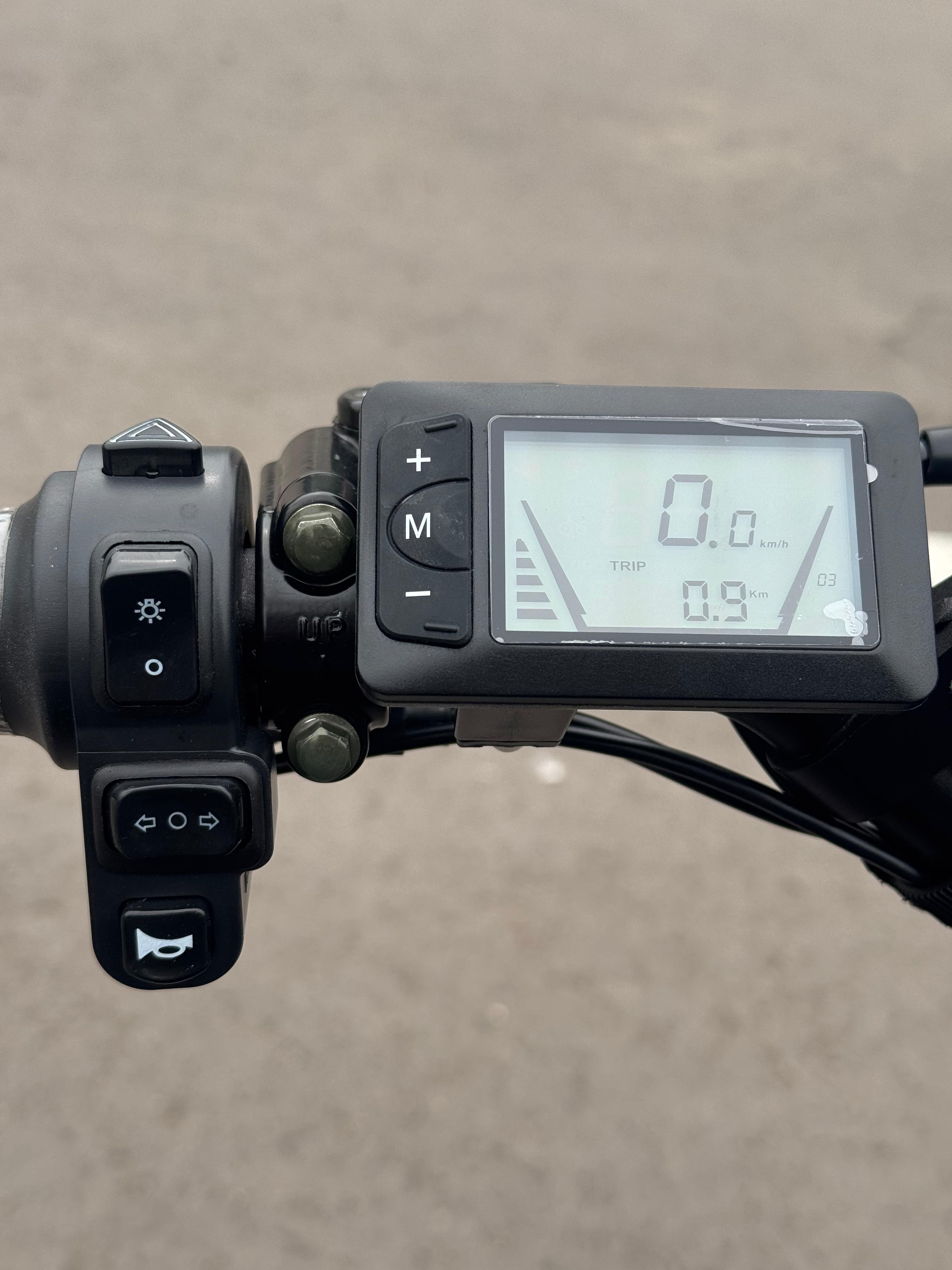 Кроме того, питбайк оборудован мощной фарой, что делает его безопасным для использования в темное время суток. Дисплей предоставляет важную информацию о текущей скорости и уровне заряда аккумулятора, что добавляет удобства в использовании и позволяет контролировать состояние электропитбайка во время поездки.