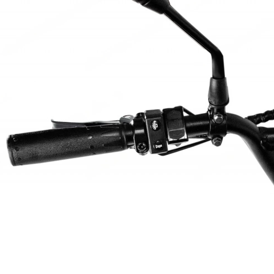 Электрический скутер Minako Cross - это настоящий кроссовый монстр. Стильный черный дизайн будет подчеркивать сильный характер своего владельца, а открытая конструкция поможет без труда обслуживать модель. Практичная рама с легкостью выдерживает нагрузку до 140 килограмм, при общем весе транспорта в 80 кг.