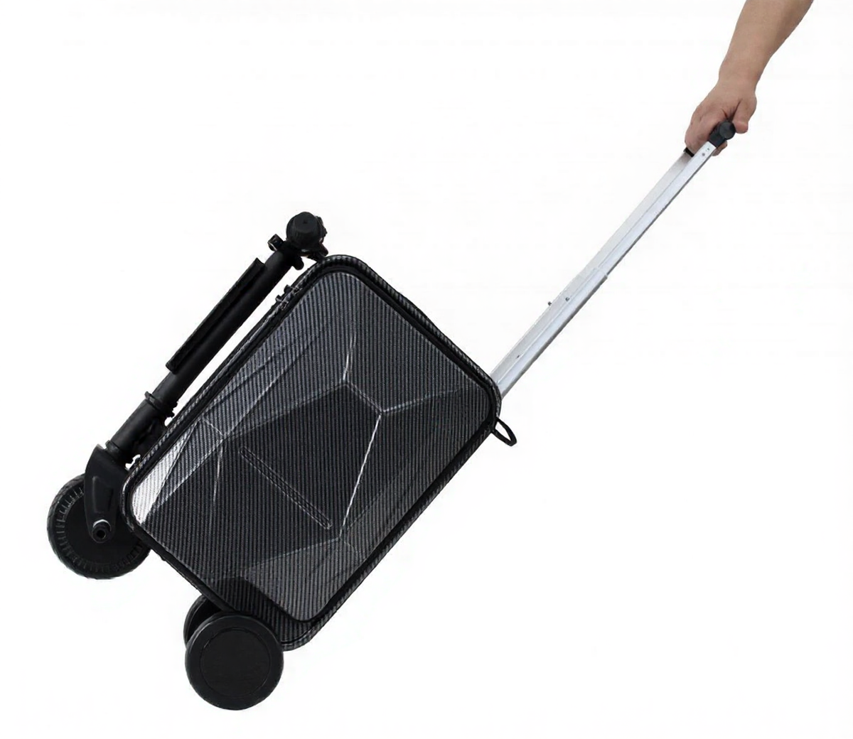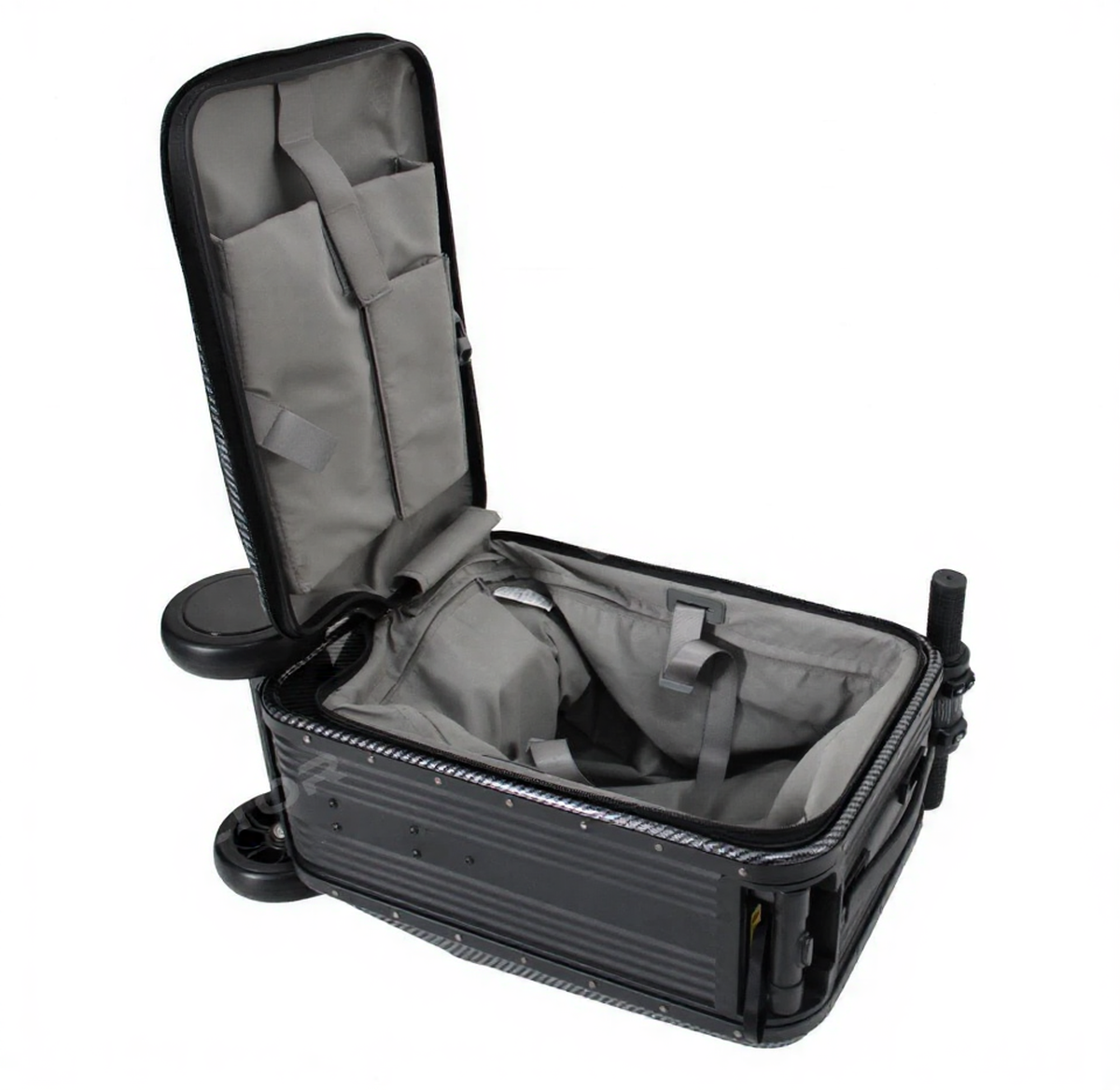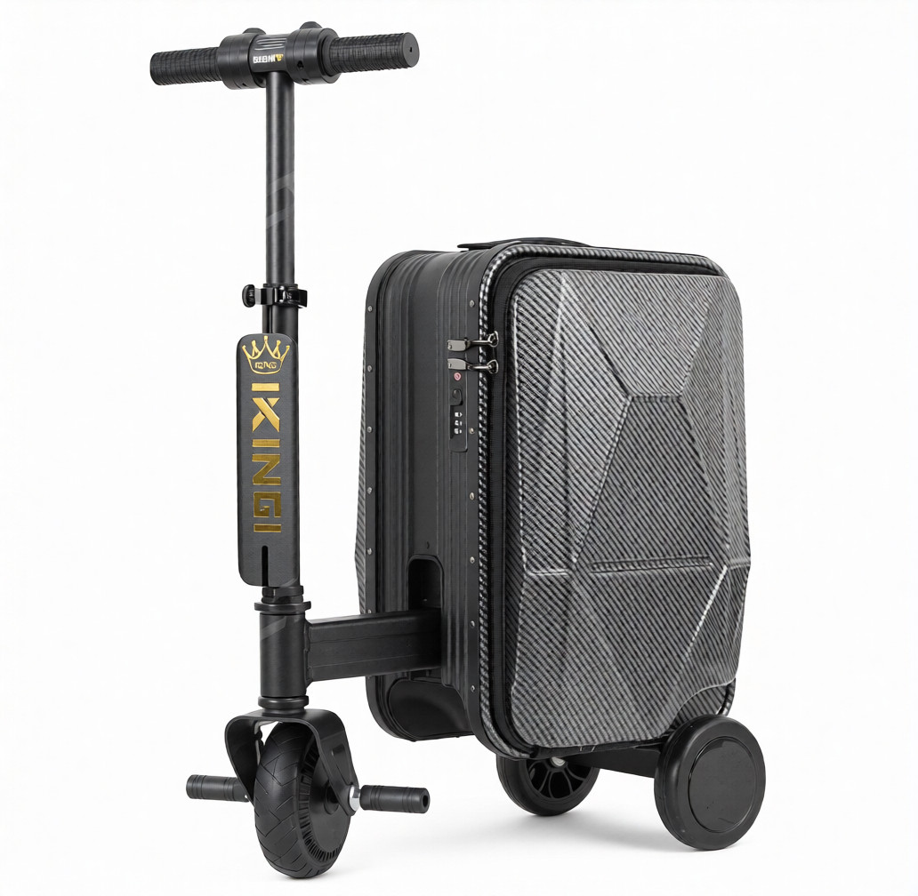 Электросамокат-чемодан IKINGI Carbon L2 представляет собой инновационное гибридное устройство, объединяющее вместительный багажный отсек и компактный электротранспорт. Корпус выполнен из алюминиевого сплава, который обеспечивает легкость конструкции и высокую устойчивость к механическим нагрузкам. Объем внутреннего отделения составляет 21 литр, что достаточно для размещения личных вещей в поездке.