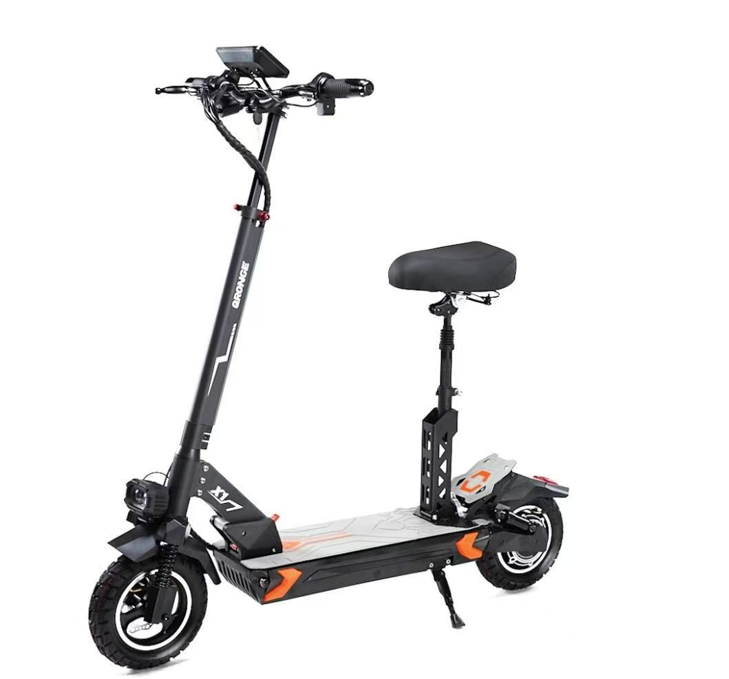 Кроме того, наличие сиденья добавляет комфорта во время поездок, особенно на длинные дистанции. Алюминиевая рама делает самокат легким и прочным, обеспечивая отличную маневренность и устойчивость.