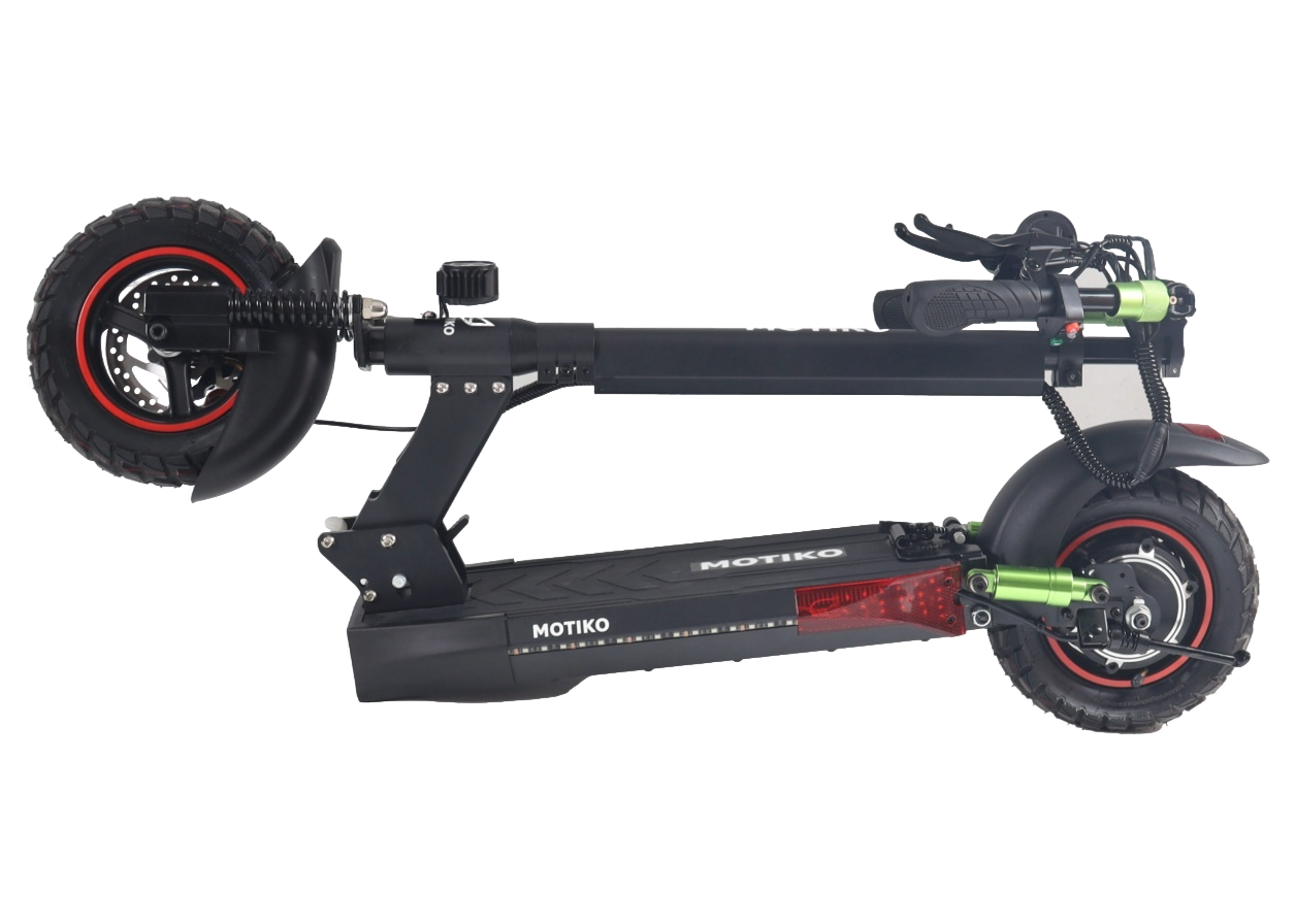 Электросамокат MOTIKO M4 выполнен на усиленной раме, обеспечивающей надежность и устойчивость при движении на высоких скоростях. Вес самоката составляет 30.3 кг, что гарантирует отличную курсовую устойчивость и уверенное поведение на дороге. Складная конструкция позволяет удобно транспортировать самокат в багажнике автомобиля или хранить в ограниченном пространстве.