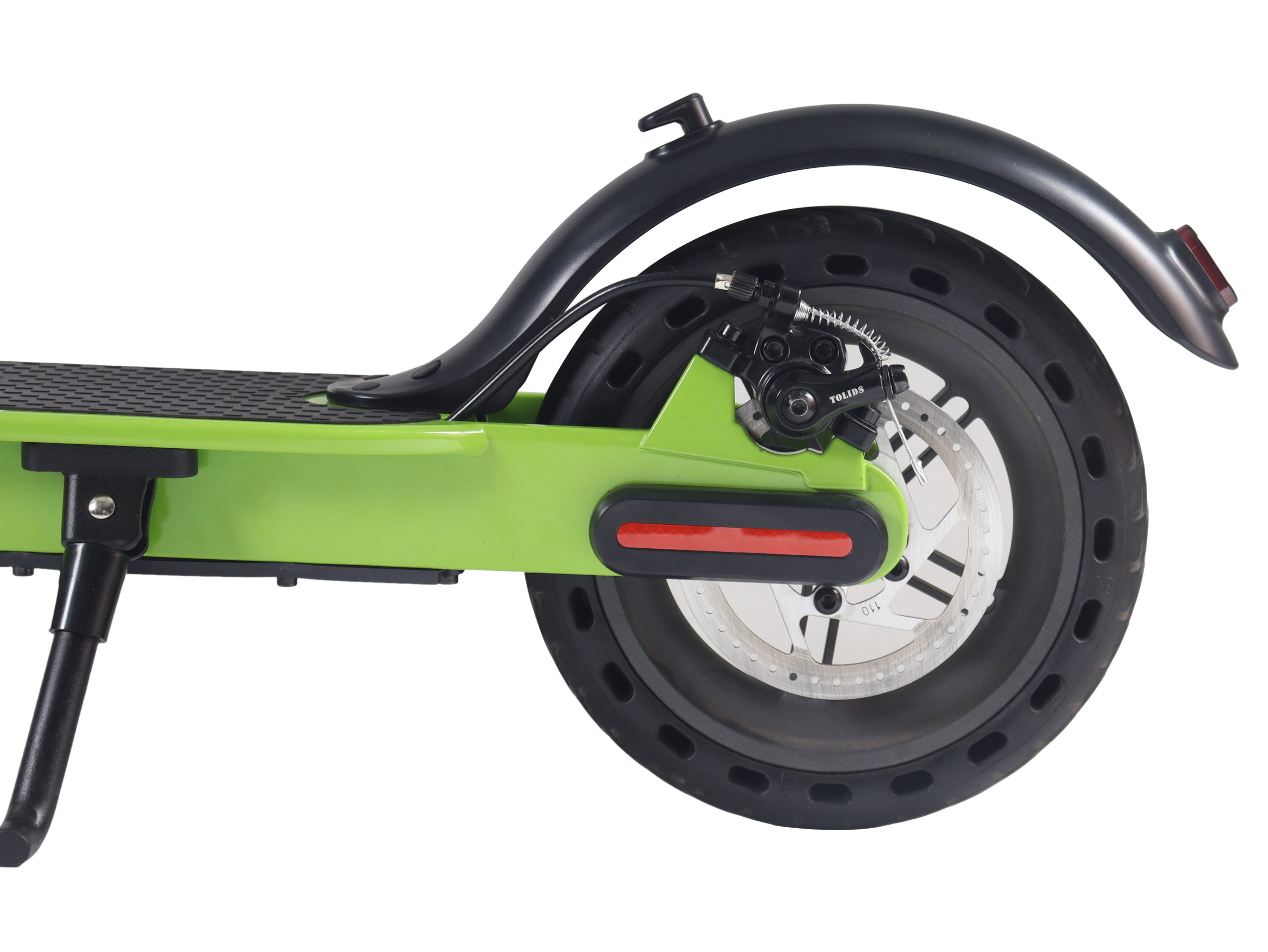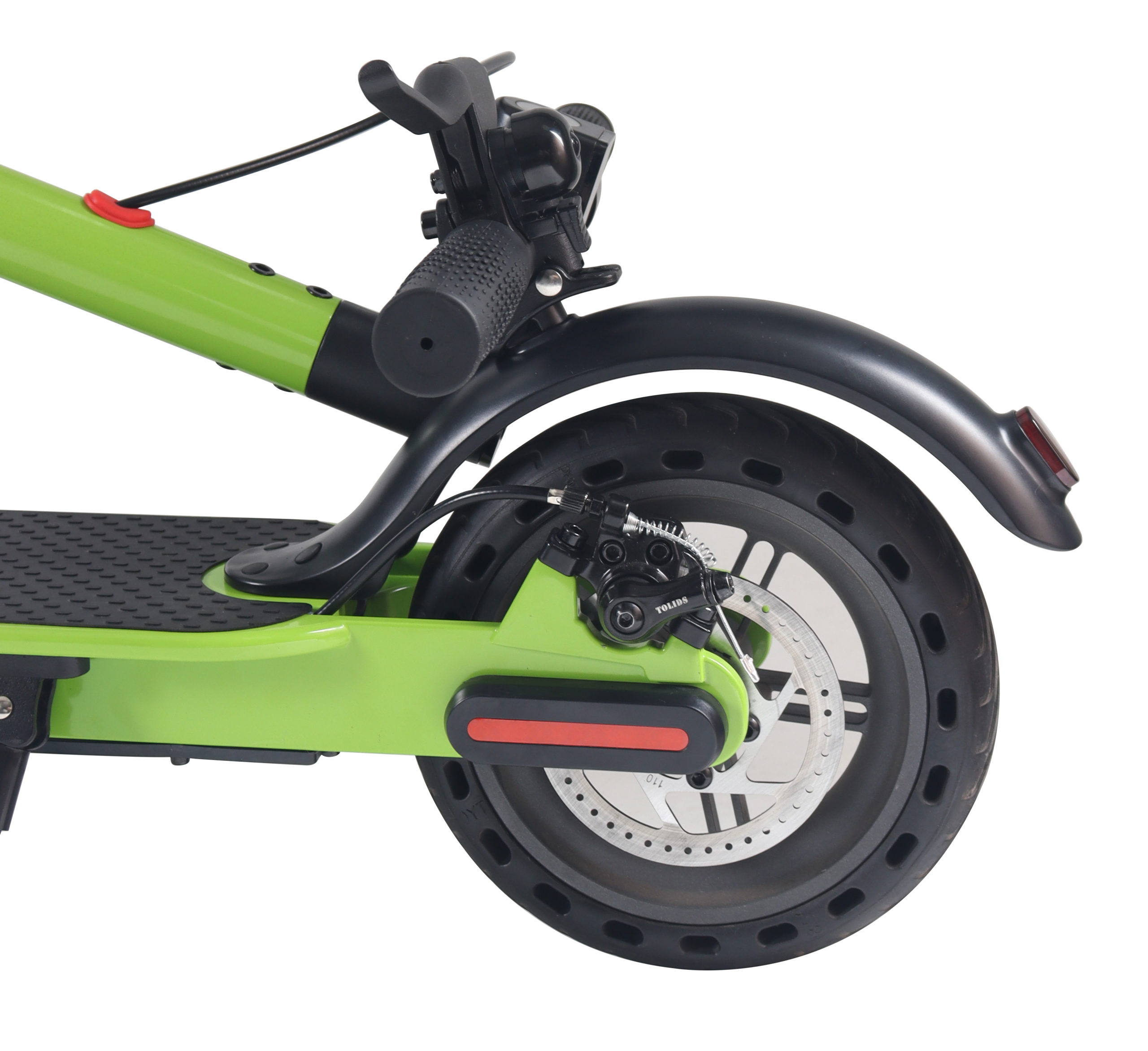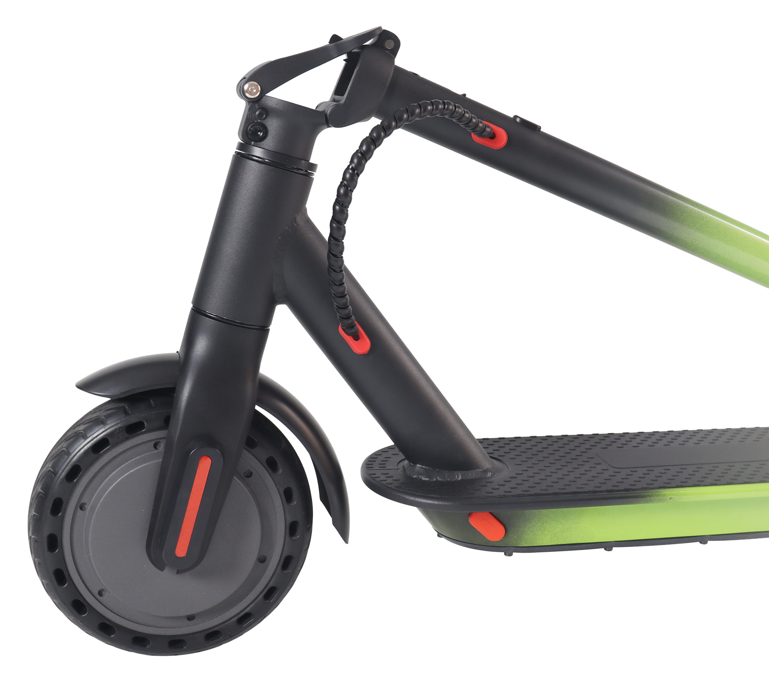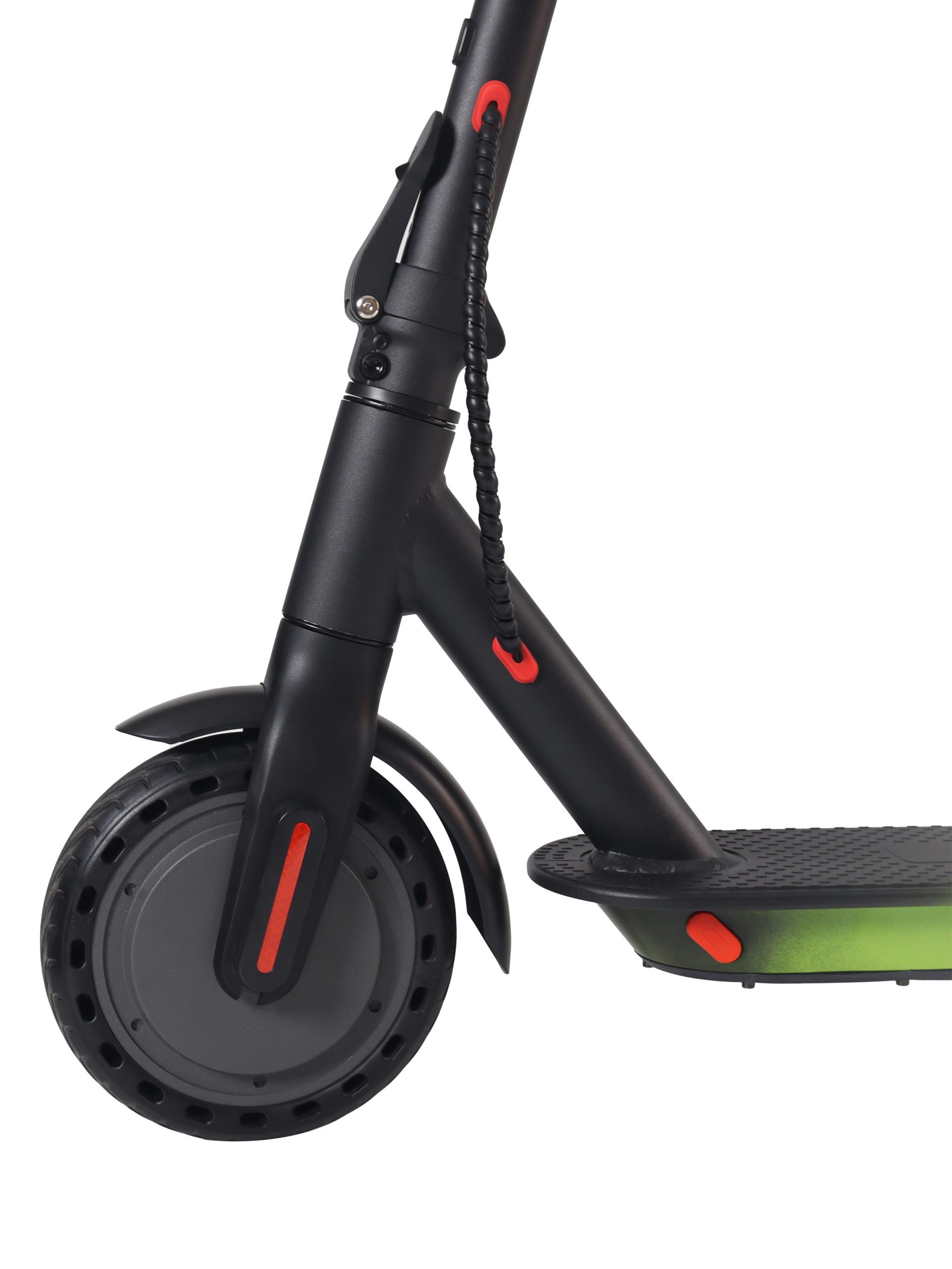 Колеса диаметром 6.5 дюймов установлены как спереди, так и сзади, обеспечивая хорошую маневренность в городских условиях. Монолитная конструкция вилки повышает жесткость передней части и улучшает точность управления. Небольшой диаметр колес способствует быстрому разгону и упрощает маневрирование в ограниченном пространстве.