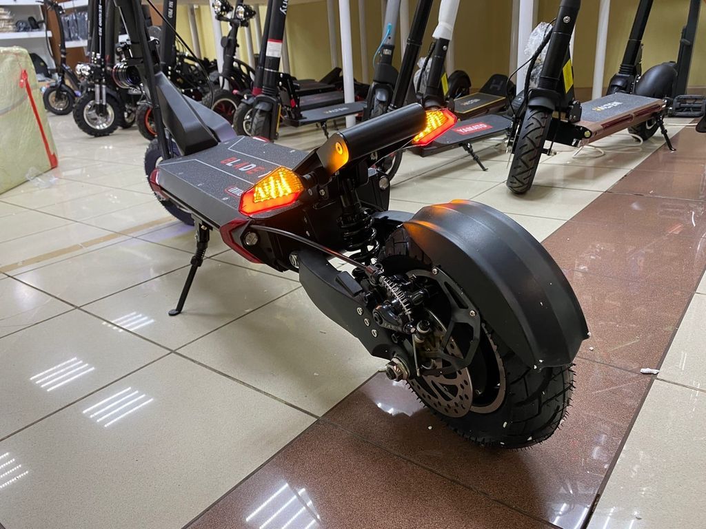 На самокате Currus BLADE 10X установлены два 10-дюймовых 2*1200W мотор-колеса. С сумарной пиковой мощностью до 3600W. Это обеспечивает уверенное ускорение и экономию батареи при езде по прямой.