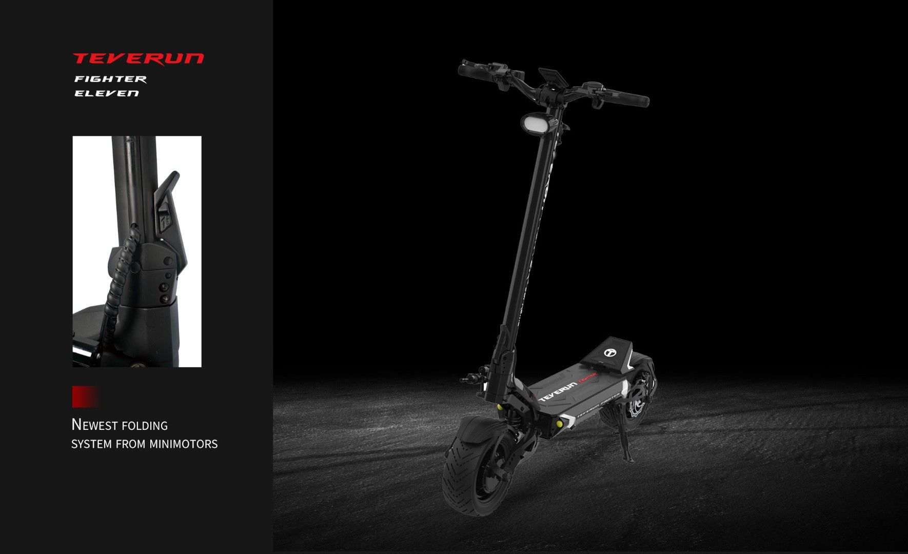 Электросамокат TEVERUN FIGHTER 11 Plus оборудован всеми современными технологиями. Запуск и блокирование самоката NFC чипом, а не привычным ключом зажигания. Для большего удобства можно использовать мобильный телефон с функцией NFC для разблокировки электросамоката. Отдельно стоит отметить гидравлическую тормозную систему. Впервые на самокатах такого класса устанавливаются тормозные роторы 160мм. Для любителей быстрой езды на электросамокат TEVERUN FIGHTER 11 Plus установлен демпфер рулевой стойки.