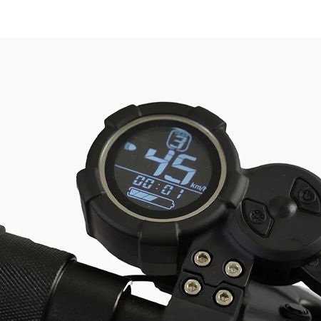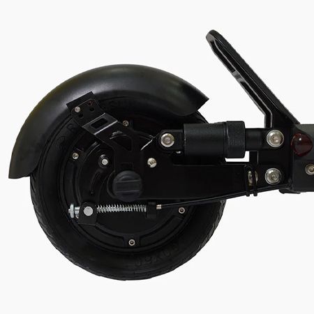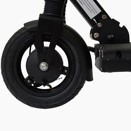 Благодаря установке спереди 8,5 дюймового колеса и удлинения амортизаторов дорожный просвет электросамоката стал выше, что положительно сказалось на его проходимости.