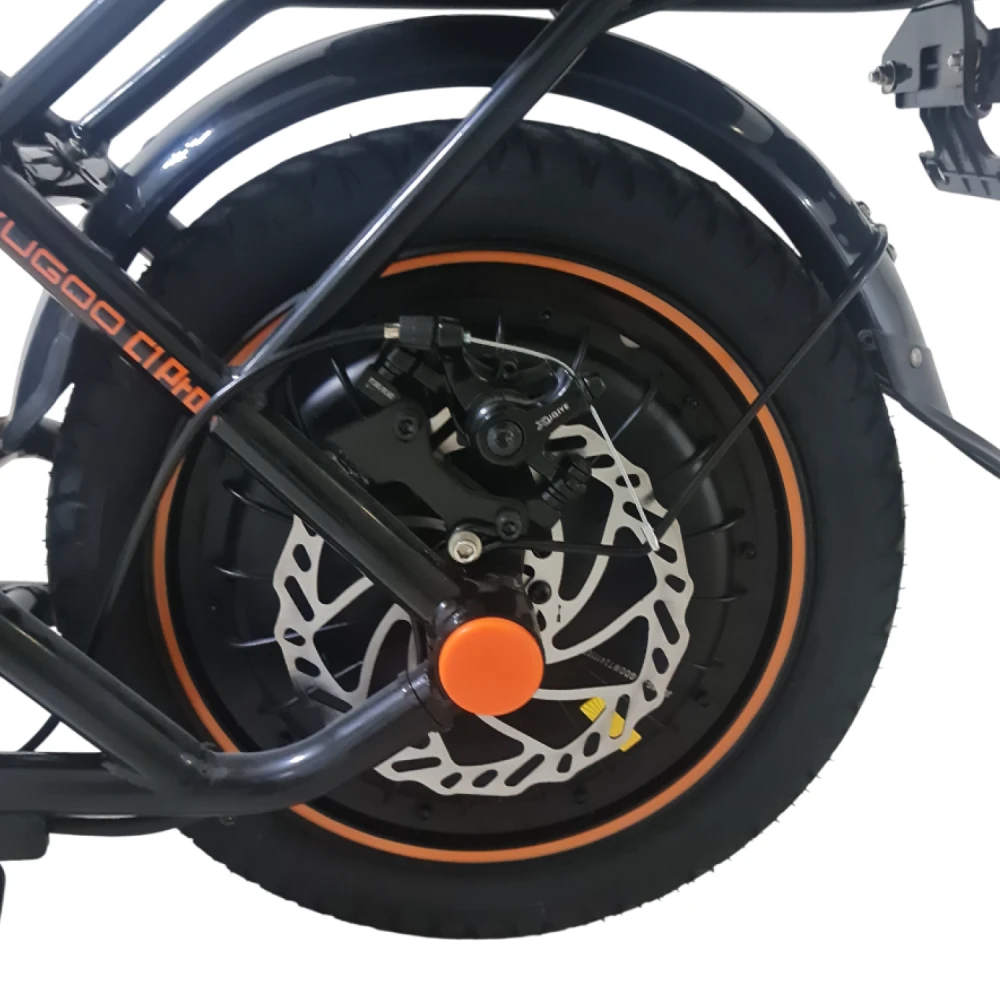 Kugoo C1 Pro+ оснащен амортизаторами, которые обеспечивают плавный ход и комфортную поездку даже по неровным дорогам. Это делает его идеальным для использования в условиях города с различными покрытиями.