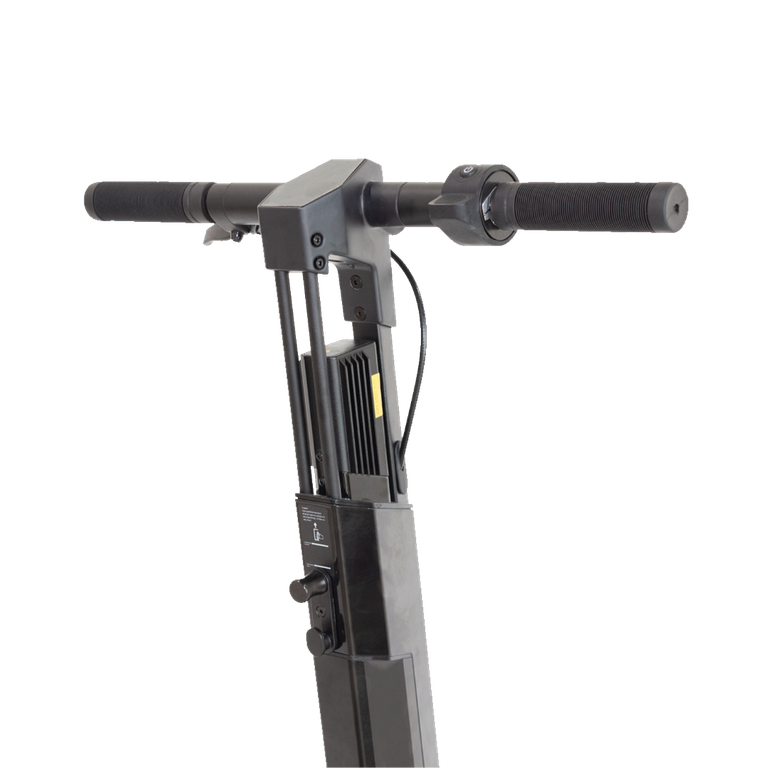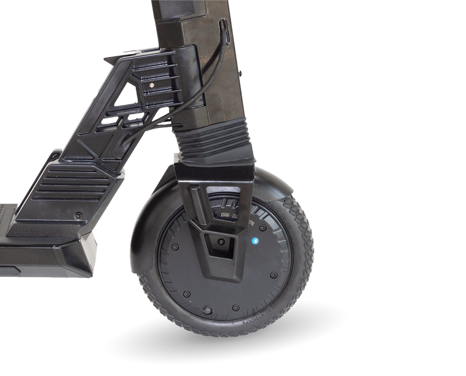 Мотор-колесо расположено спереди. Колеса пневматические, сзади установлена система амортизации. Материалы самоката очень качественные и отлично подогнаны.