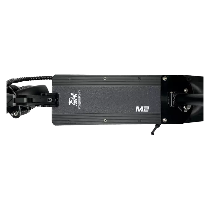 KUGOO M2 + обладает надежной системой складывания рамы и складными ручками, что делает его очень практичным для транспортировки. В сложенном состоянии самокат удобно помещается в багажник автомобиля или может быть перевезен в общественном транспорте, что значительно упрощает его использование в городских условиях.