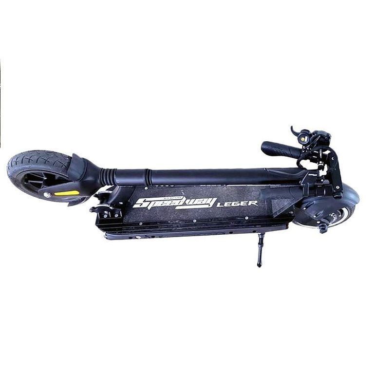 - Компактность - электросамокат Speedway Leger удобно складывается и транспортируется, благодаря складывающемуся рулю и маленькому весу.