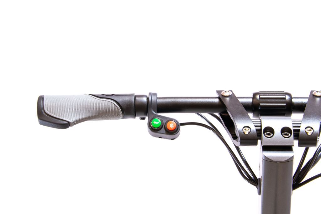 - За счёт складной рулевой стойки и рукоякти обеспечивается комфортное хранение и перемещение электросамоката.