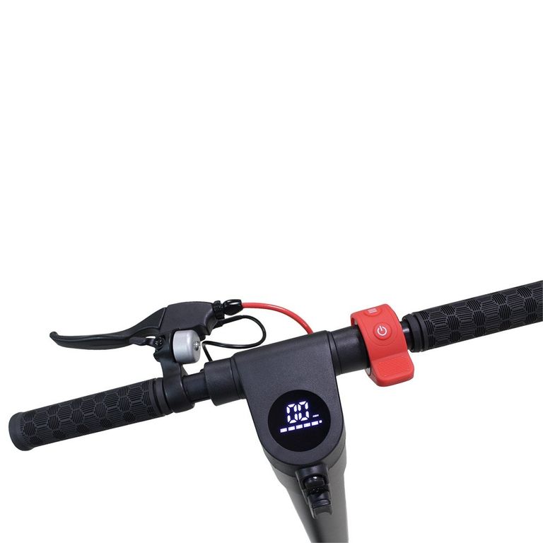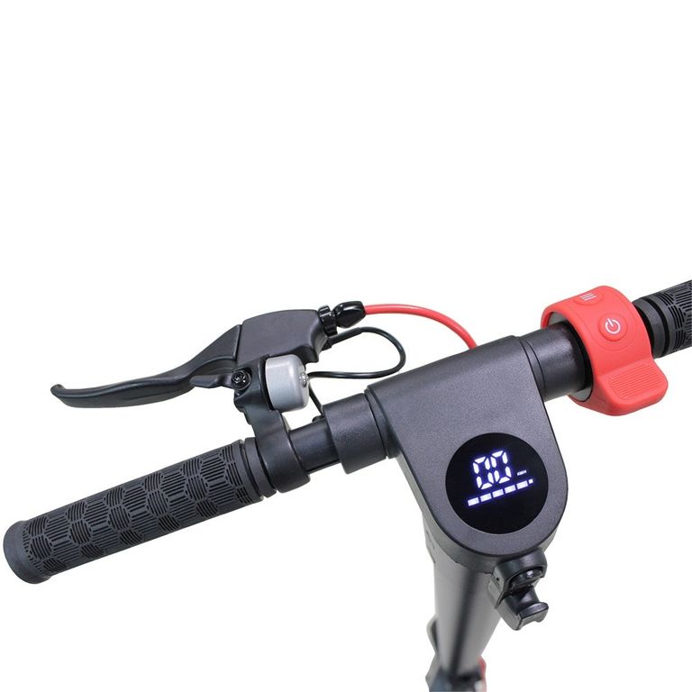 - Самокат оснащен передней фарой, стоп-сигналом и дисплеем.