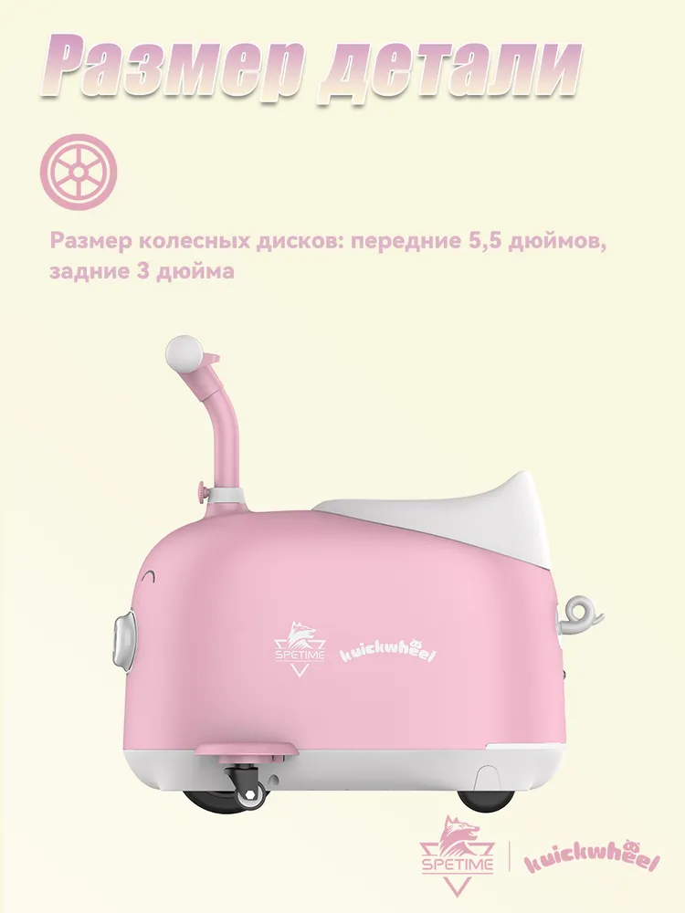 Детский электромобиль-чемодан 2в1 оснащен тремя колесами, что обеспечивает отличную устойчивость и безопасность во время езды. Степень защиты IPX4 защищает устройство от брызг, что позволяет использовать его в различных погодных условиях, за исключением дождя. Это делает самокат надежным спутником для активного отдыха.