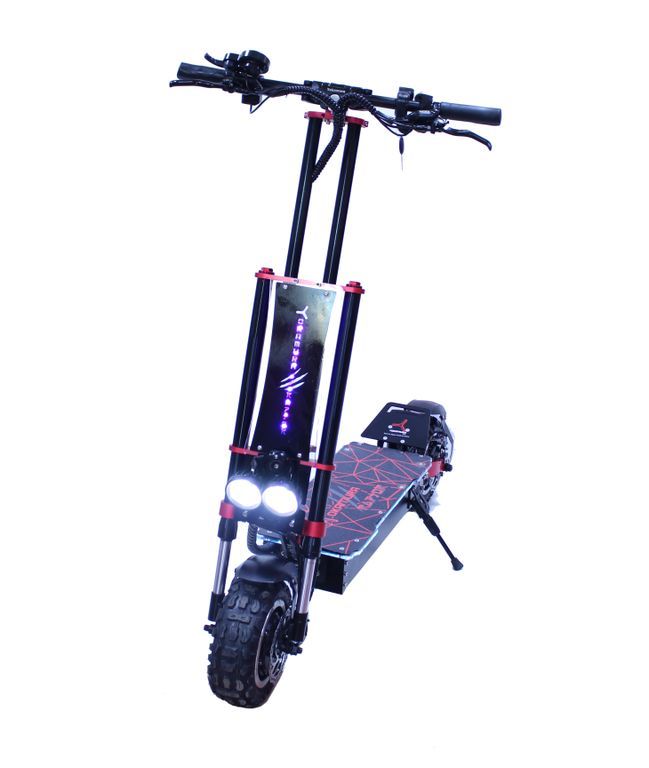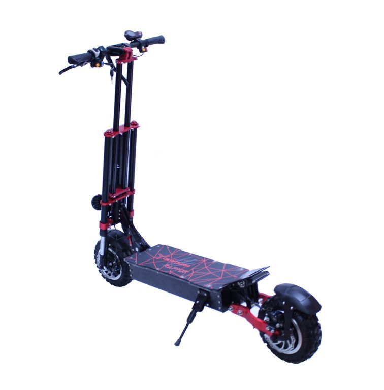 ЭЛЕКТРСАМОКАТ YOKAMURA Raptor 11 - это абсолютная новинки 2020 года создана высококвалифицированными инженерами компании. Все отточено до мелочей, надежная подвеска в виде мотовилки, отлично справляется с любыми не ровностями и при любых скоростях. Мощные новые мотор колеса по 3000w каждое, имеет не повторимую начинку из новейших магнитов шириной 6 см, при помощи которых максимальная скорость которую может набрать самокат является свыше 90 км/ч. Набор скорости стал очень плавный и управляемый при помощи умных мозгов самоката, в нем установлены самые новые синусные контролеры по 45 ампер каждый, что является на сегодняшний день трендом в индустрии электротранспорта.