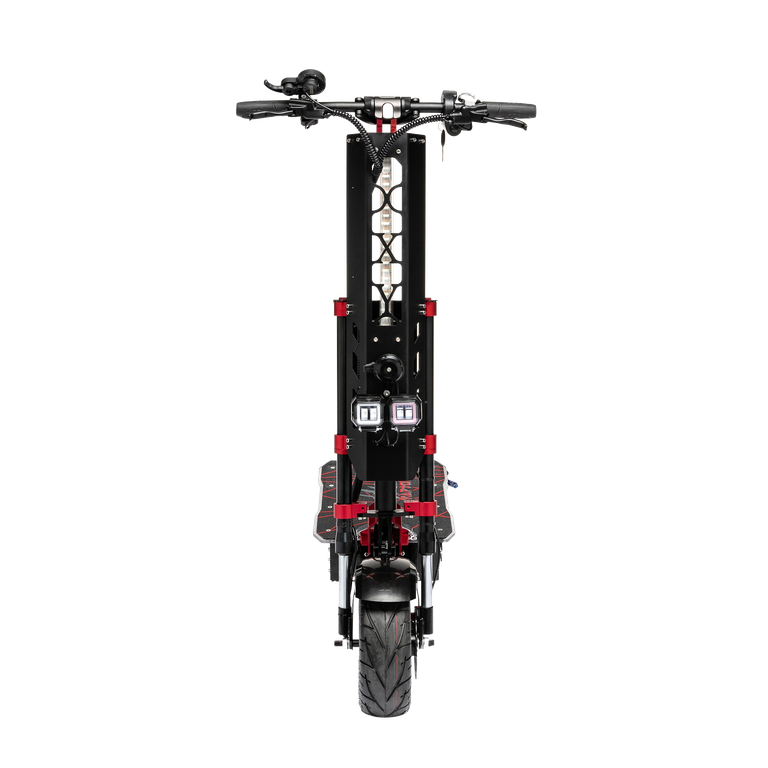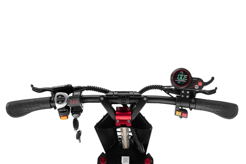 Raptor оснащен новейшими Синусным контроллерами по 45А каждый, что дает самокату плавный и мгновенный набор скорости. Самокат собран из сверпрочного алюминиевого сплава, оснащен гидравлическими тормозами, клаксоном, поворотниками, габаритными и стоп сигралами, ярокй фарой. Что делает езду на данном самокате комфортной в любое время суток при любой погоде.