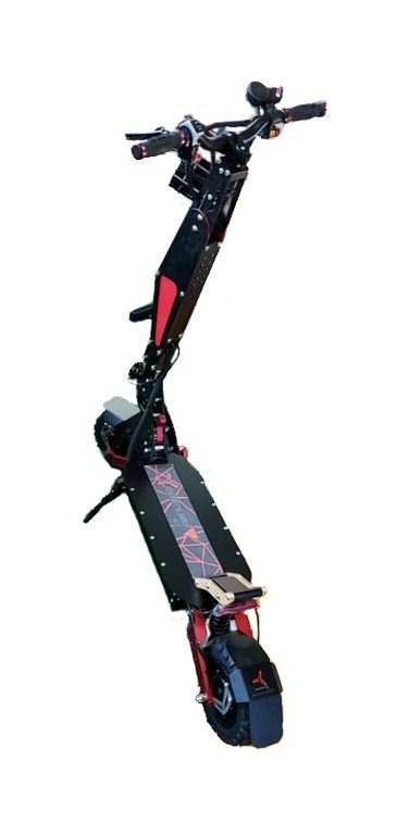 - На борту мы имеем мощные мотор колеса в совокупности 6000w, аккумуляторную батарею нового поколения из элементов 21700 на 60v40aH при помощи которой вы сможете проехать дистанцию свыше 100 км пути на одном заряде.
