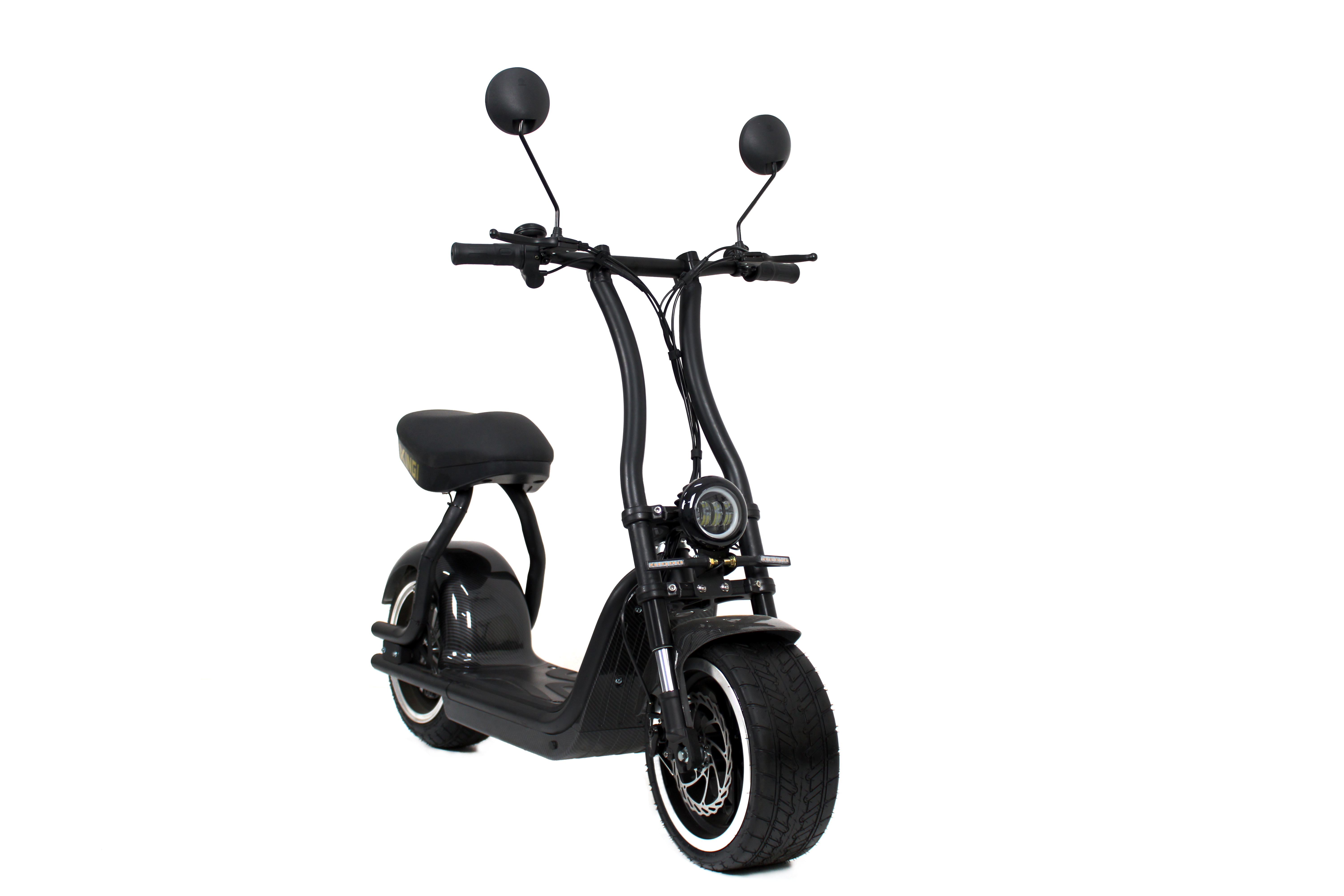 Электроскутер оснащен троссовыми тормозами, которые обеспечивают надежное торможение. Хотя троссовая система менее эффективна по сравнению с гидравлическими тормозами, она все же обеспечивает достаточную безопасность для городских условий. Удобное сиденье и подножка делают его комфортным для длительных поездок.