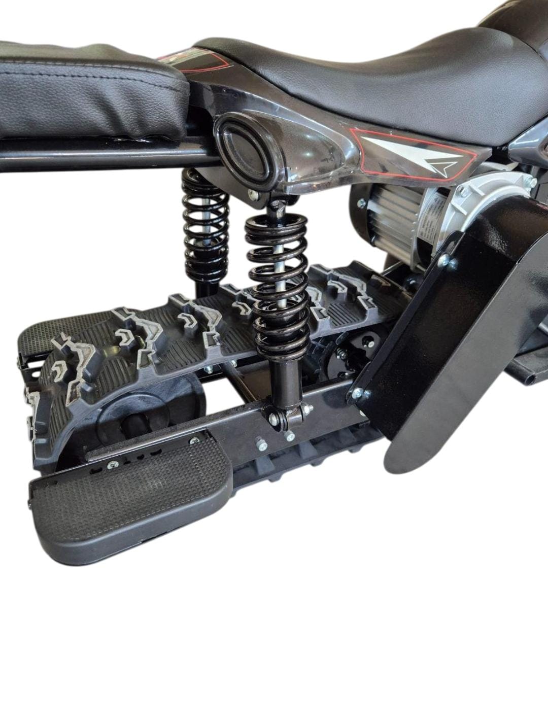 С мощностью двигателя в 1000 Вт и максимальной скоростью до 60 км/ч, STREETBARS PATROL предлагает отличную динамику и уверенное движение по снегу. Благодаря аккумулятору на 48 V и емкостью 20 Ah, вы можете рассчитывать на запас хода до 65 км, что позволяет наслаждаться длительными поездками без частой подзарядки.