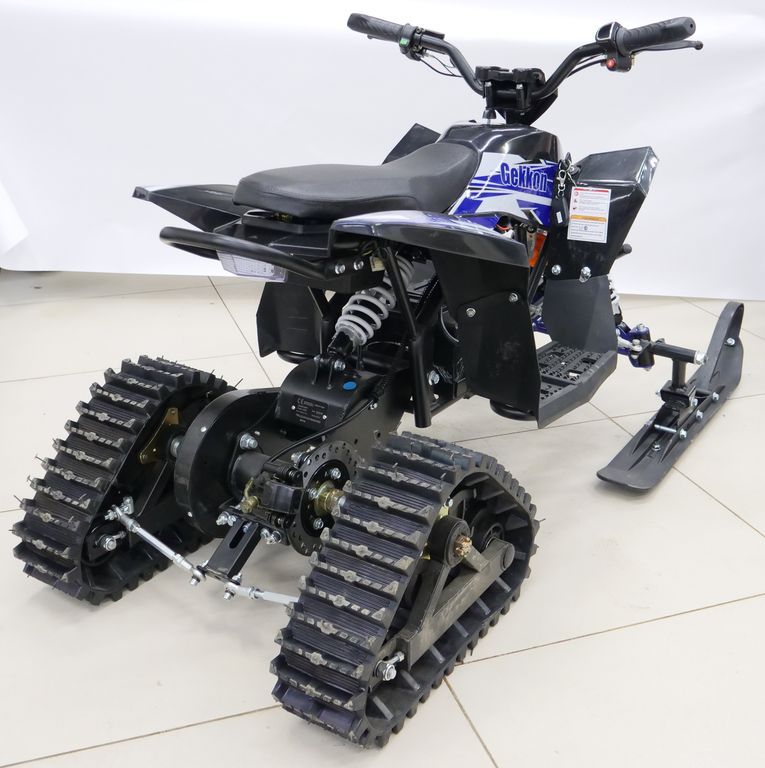 Cнегоцикл Gekkon Snow - это снегоход на гусеничном ходу, построенный на базе квадроцикла Motax Gekkon 70 cc. С возможностью переоборудования в полноценный квадроцикл на летний сезон. Он отлично подойдёт для детей в возрасте от 3 до 9 лет.