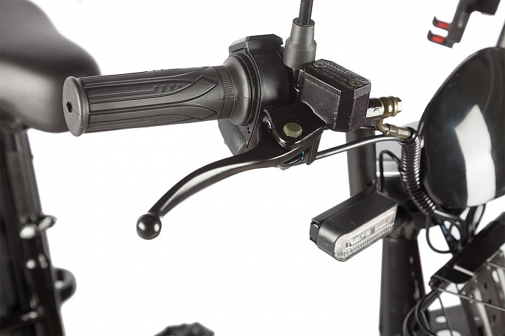 Надежные дисковые гидравлические тормоза обеспечивают мгновенную остановку в любых условиях, а амортизация, представленная передней вилкой и усиленными задними гидравлическими рессорами, гарантирует плавность хода даже на неровных дорогах.