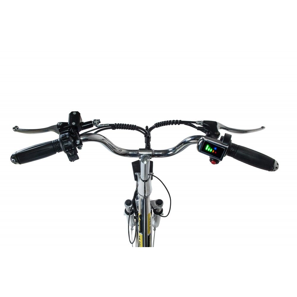 Рама электрического велосипеда выполнена из прочного алюминия. Велосипед оснащен качественными гидравлическими тормозами, которые работают точно и плавно, обеспечивая безопасность и комфорт при торможении. Амортизационная вилка позволяет плавно преодолевать неровности дороги, повышает маневренность велосипеда и поглощает все удары при торможении.