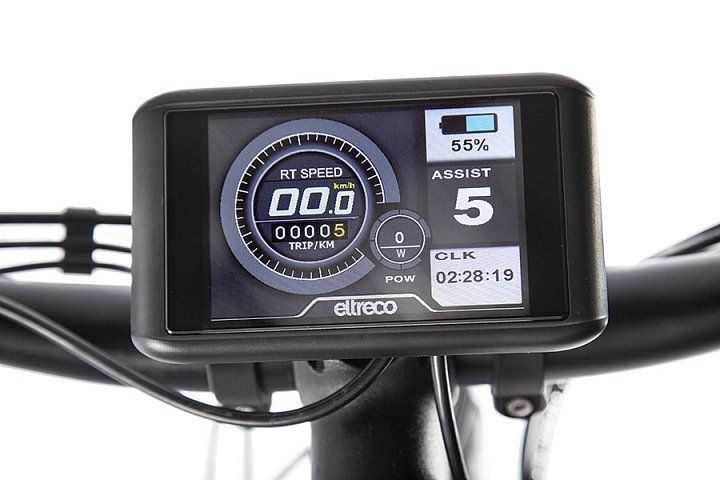 - велогибрид оснащён большим фирменным велокомпьютером Eltreco с цветным жидкокристаллическим дисплеем