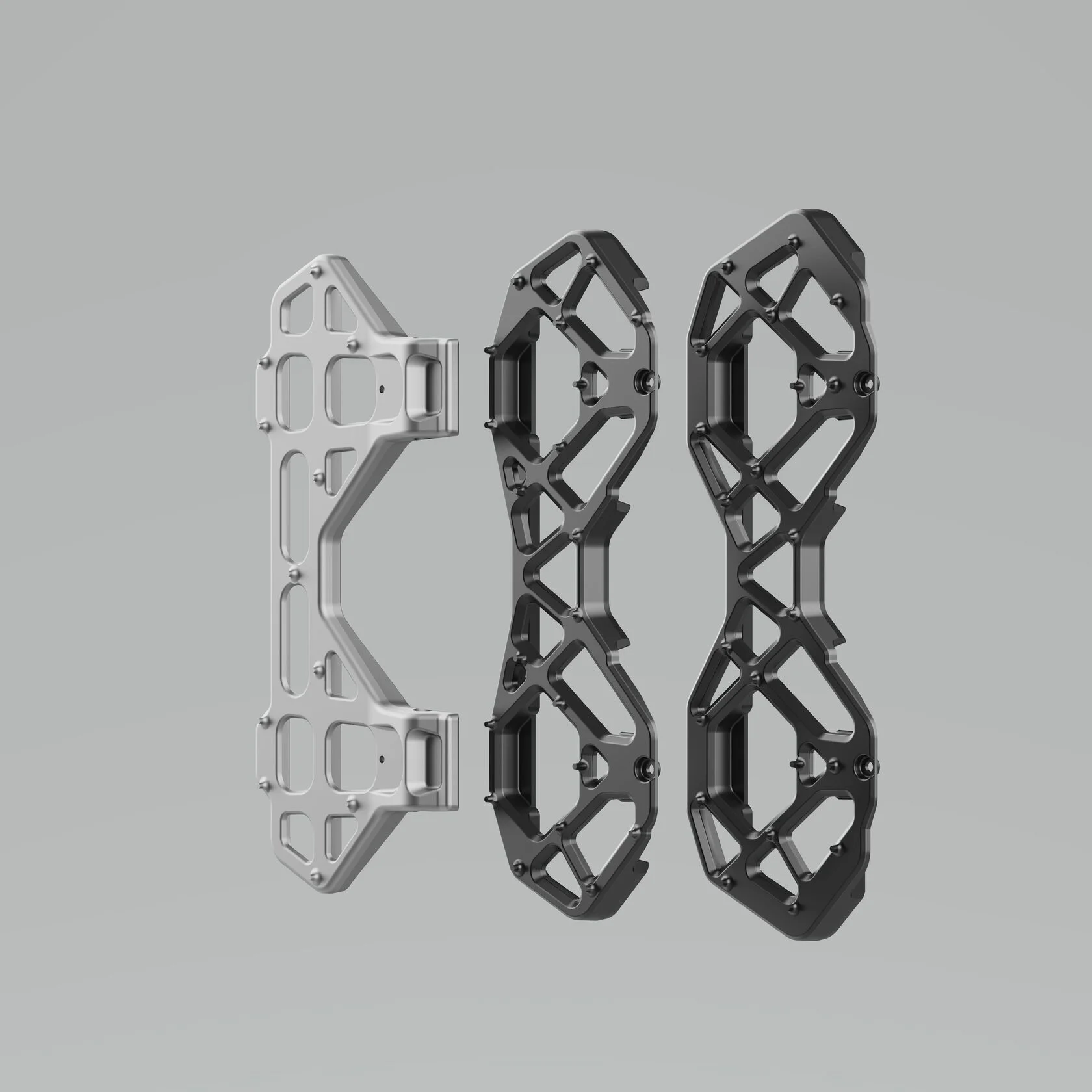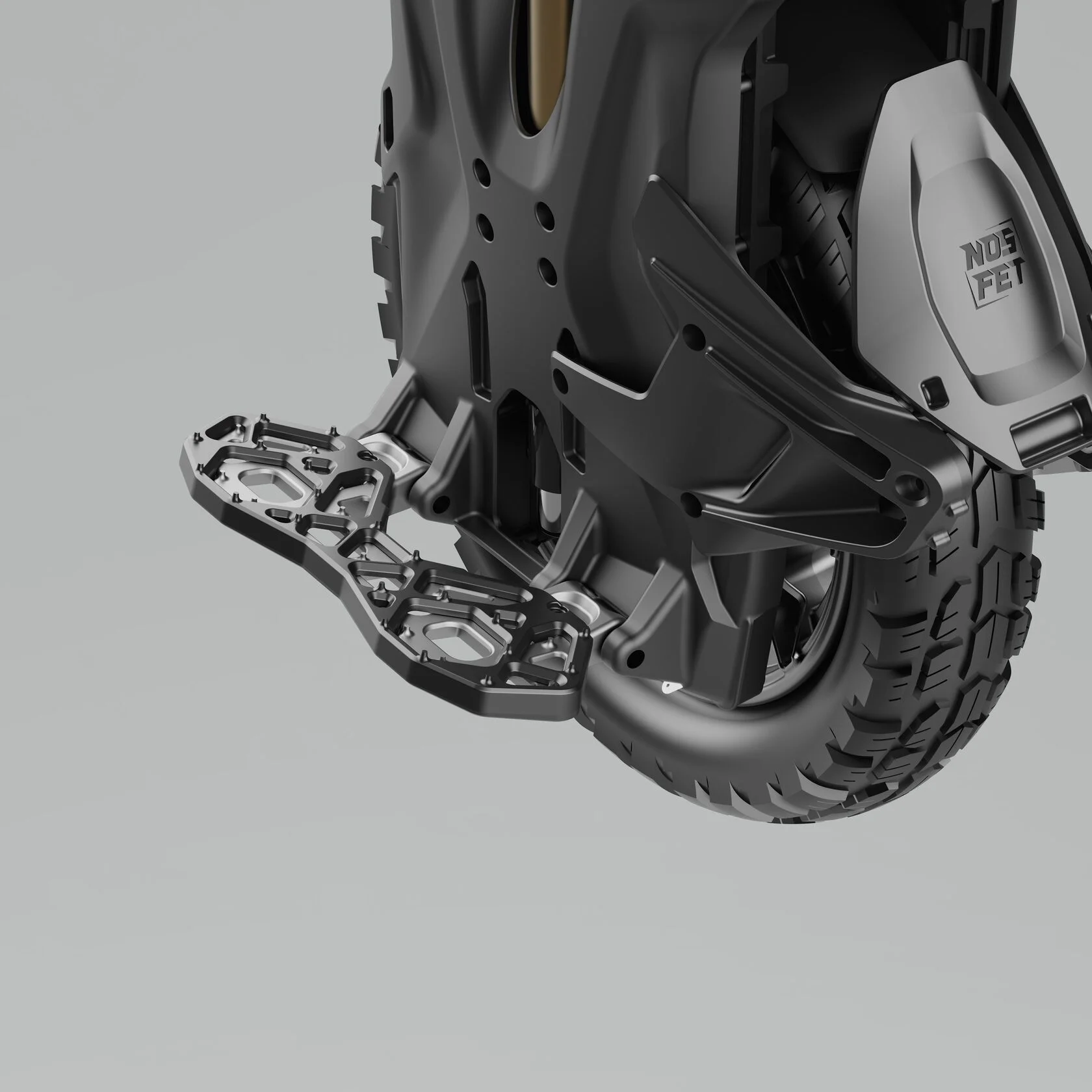 Адаптивные педали представлены в трёх вариантах исполнения: литые педали для максимальной жёсткости и накладки двух размеров, позволяющие подобрать идеальную посадку под любой размер обуви и стиль катания. Литые педали подойдут для агрессивной езды, а мягкие накладки — для повседневных прогулок. Это даёт возможность каждому райдеру настроить моноколесо под свои индивидуальные предпочтения и добиться максимального контроля над управлением. Поверхность педалей имеет противоскользящее покрытие, обеспечивающее надёжное сцепление с обувью в любую погоду.